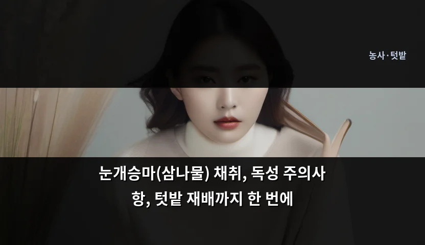 또 한 가지, 채취할 때 비슷하게 생긴 독초와 혼동하지 않아야 합니다. 눈개승마는 장미과 식물이라 잎 가장자리에 가는 톱니가 있고 잎 표면이 부드럽습니다. 확신이 없을 때는 채취하지 않는 게 맞아요. 국립수목원 국가생물종지식정보시스템(nature.go.kr)에서 사진을 비교해보는 것도 방법입니다.