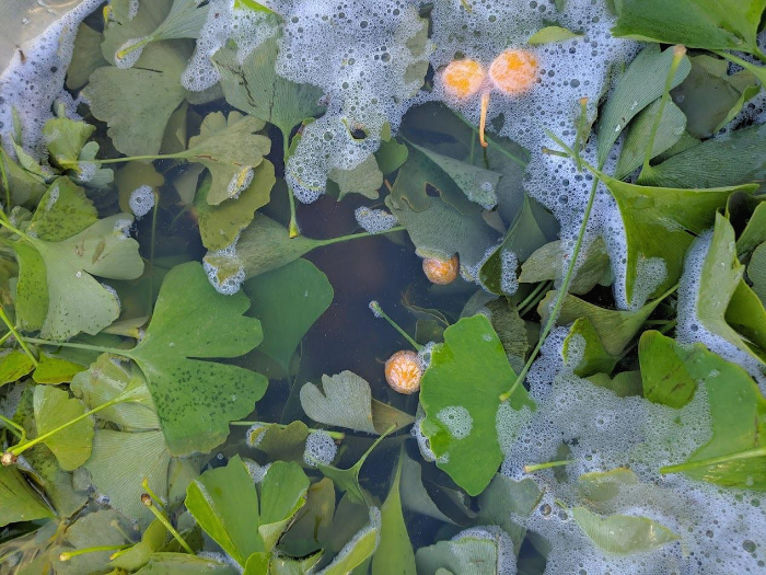 은행과 은행잎을 넣은 이 물을 오랫동안 달인다고 생각할 정도로 끓이게 되면, 은행을 이용한 천연 배추벌레 퇴치제가 만들어지게 되는 것입니다. 사람 퇴치제 역할도 합니다.